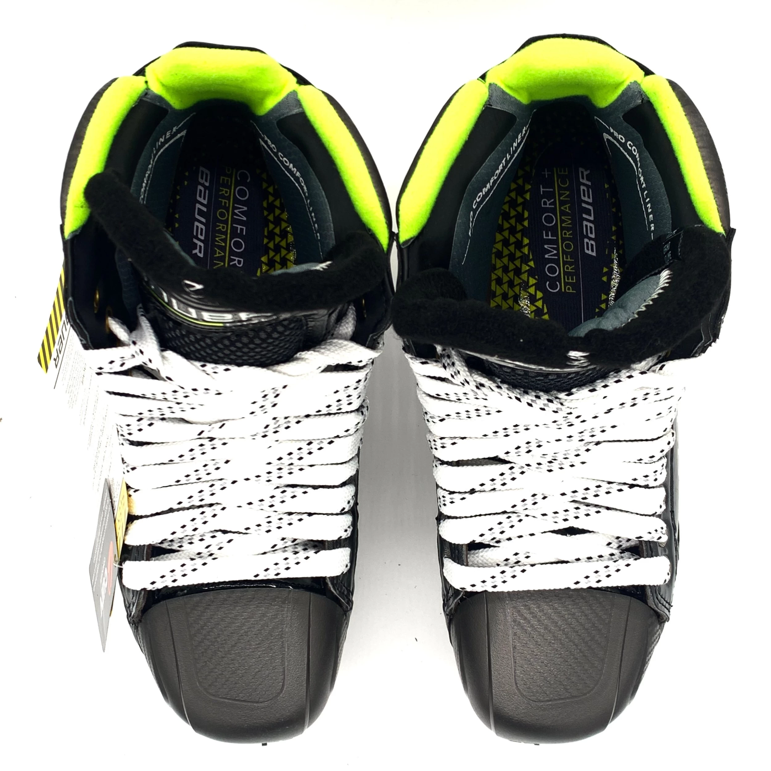 With Bauer narrowing down their goalie skate market removing the Supreme and Vapor lines, the Bauer Pro goal skate is the predecessor of the Bauer Konekt offering a perfect blend of features from the Bauer 2X Pro and Ultrasonic models. The Bauer Pro goalie skate offers unparalleled comfort and performance. The tongue and ankle support system is similar to that of the 2X Pro, providing maximum stability and protection for the foot and ankle. Meanwhile, the toe box and contour design are reminiscent of the Ultrasonic, ensuring a snug fit and exceptional energy transfer for quick, explosive movements around the crease. What really sets the Bauer Pro goalie skate apart is its exceptional comfort and quick break-in time. From the moment you lace up, you’ll notice the glove-like fit that conforms to your foot, providing unmatched comfort and support. And with a quick and easy break-in time, you can hit the ice with confidence and focus on making those highlight-reel saves.