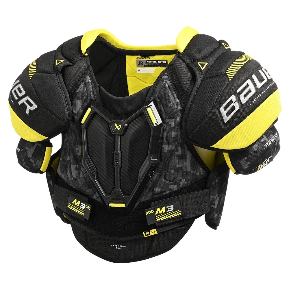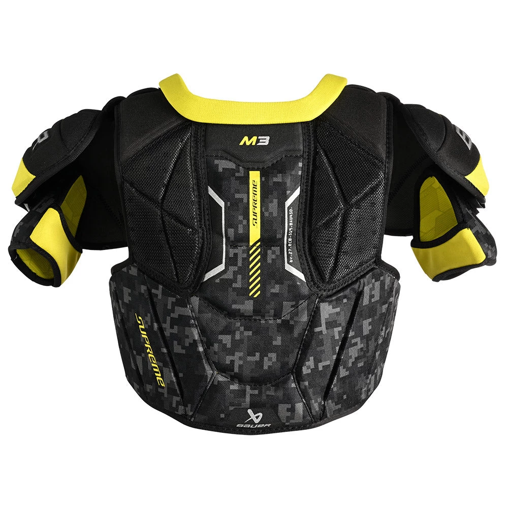 The M3 shoulder pads are the third model in the 2023 Bauer Supreme lineup and deliver great mobility and protection for the competitive level player. Building on the performance of the previous generation 3S shoulder pads, the new M3 model integrates a floating sternum and adjustable biceps which provide more impact protection and enhanced flexibility.