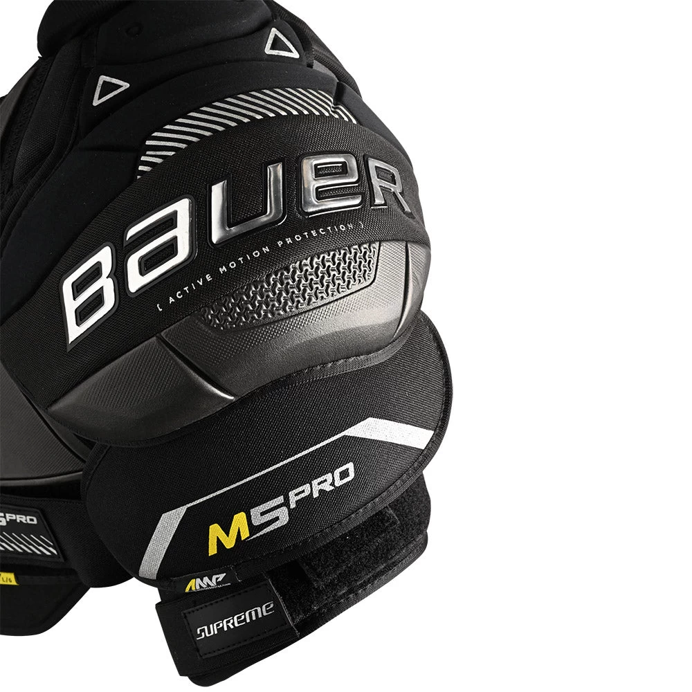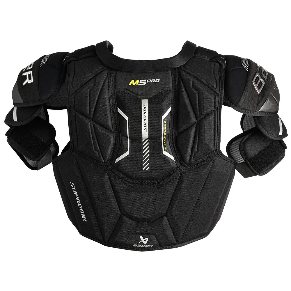 The M5PRO shoulder pads are the second model in the 2023 Bauer Supreme lineup and deliver excellent mobility and protection for the performance level player. Building on the performance of the previous generation 3S Pro shoulder pads, the new M5PRO model integrates a CURV composite sternum and AMP split biceps with CURV which provides more lightweight impact protection and enhanced mobility.