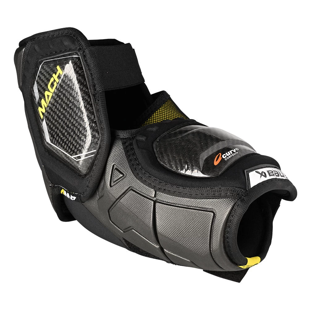 The Mach elbow pad is the top model in the 2023 Supreme lineup and delivers maximum stability and protection for the elite and pro level player. Building on the performance of the previous generation Ultrasonic, the new Mach model integrates a new low profile elbow cap and CURV composite bicep, and forearm protection, which provides the best secure fit and lightweight protection against impact in key slashing areas.