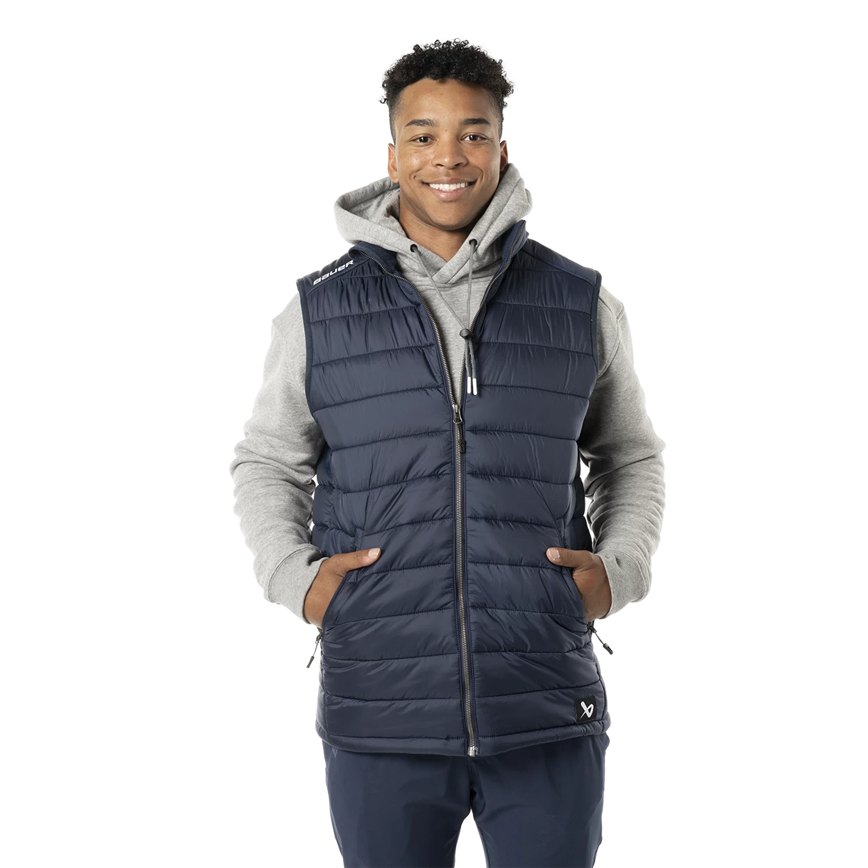 Go from the rink to anywhere around town in the Bauer Team Puffer Vest. A classic layering piece to take you from season to season, this lightweight vest helps keep you warm without any of the unwanted weight.