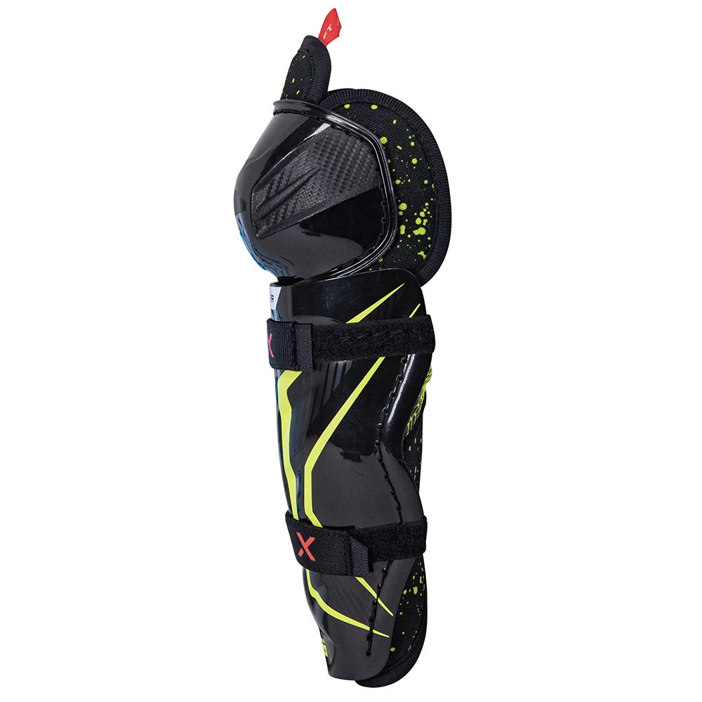 The Velocity hockey shin guard is an exclusive offering in the 2022 Bauer Vapor lineup that delivers good protection, comfort and flexibility for the competitive level player at a price point that makes it a unique value. Sitting right below the stock Vapor 3X shin guard, the Velocity offers the same X-Lite Shield shin cap and removable comfort liner from the higher model.