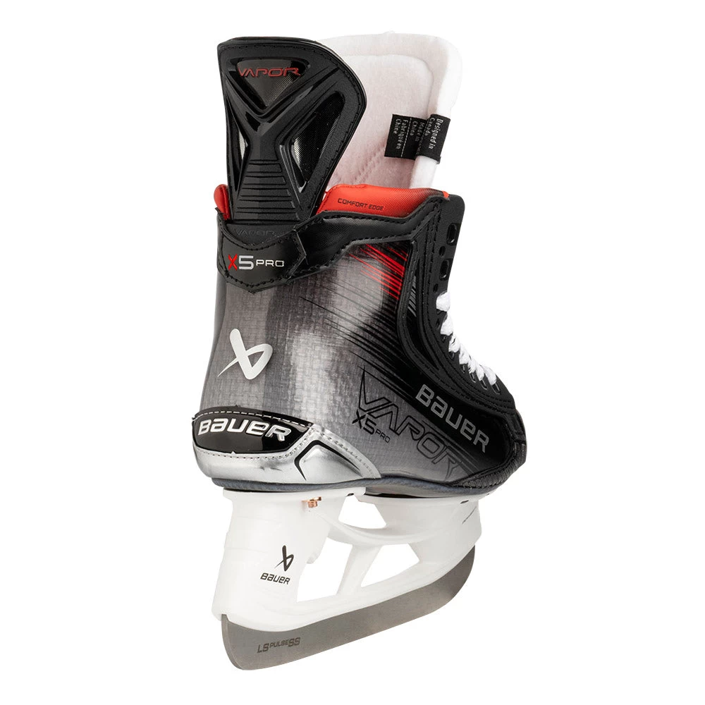 The X5 PRO ice hockey skate is the second model in the 2023 Bauer Vapor lineup and delivers amazing speed and acceleration for the performance level player. Building on the performance of the previous generation 3X Pro skate, the new X5 PRO model integrates 3D lasted CURV composite with the new Powerfly holder and Fly steel which provides more responsive turning and edging as well as a more secure and durable connection between the blade and holder.