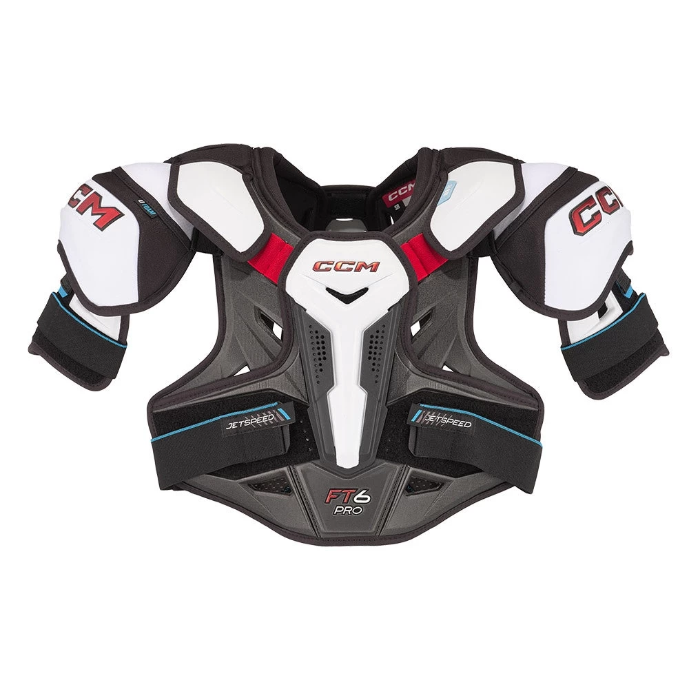 The FT6 Pro shoulder pads are the top model in the 2023 CCM Jetspeed lineup and deliver maximum breathability and mobility for the elite and pro level player. Building on the performance of the previous generation FT4 Pro shoulder pads, the new FT6 Pro model integrates the new AER-TECH thermoregulation system and molded Zotefoam pads which provide enhanced air circulation, sweat evaporation and lightweight protection.
