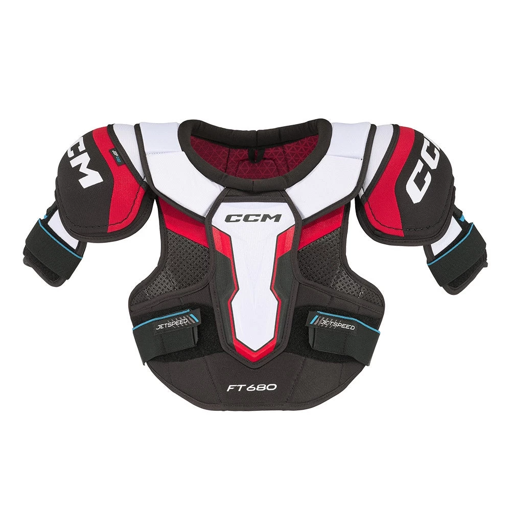 The FT680 shoulder pads are the third model in the 2023 CCM Jetspeed lineup and deliver great breathability and mobility for the competitive level player. Building on the performance of the previous generation FT485 shoulder pads, the new FT680 model integrates dual-layer front construction and anatomical sternum and spine for enhanced flexibility and protection.