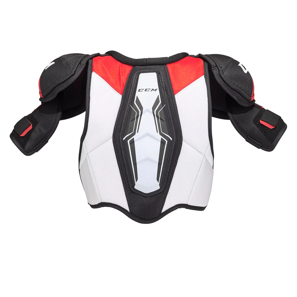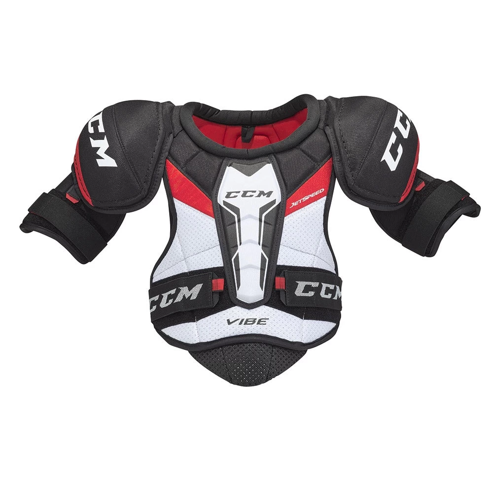 The 2021 Jetspeed Vibe Shoulder Pads are an exclusive offering in the Jetspeed family and will allow the recreational level player to remain quick and agile on the ice while taking advantage of upgraded protection. The Control is slotted between the FT475 and FT485 models. The Vibe shoulder pads are constructed with a removable belly pad and clavicle pads that are reinforced with PE plastic inserts to provide an increase in protection over the FT475 pads