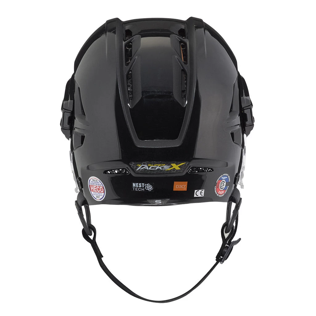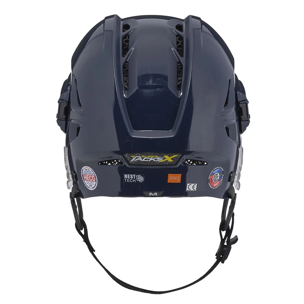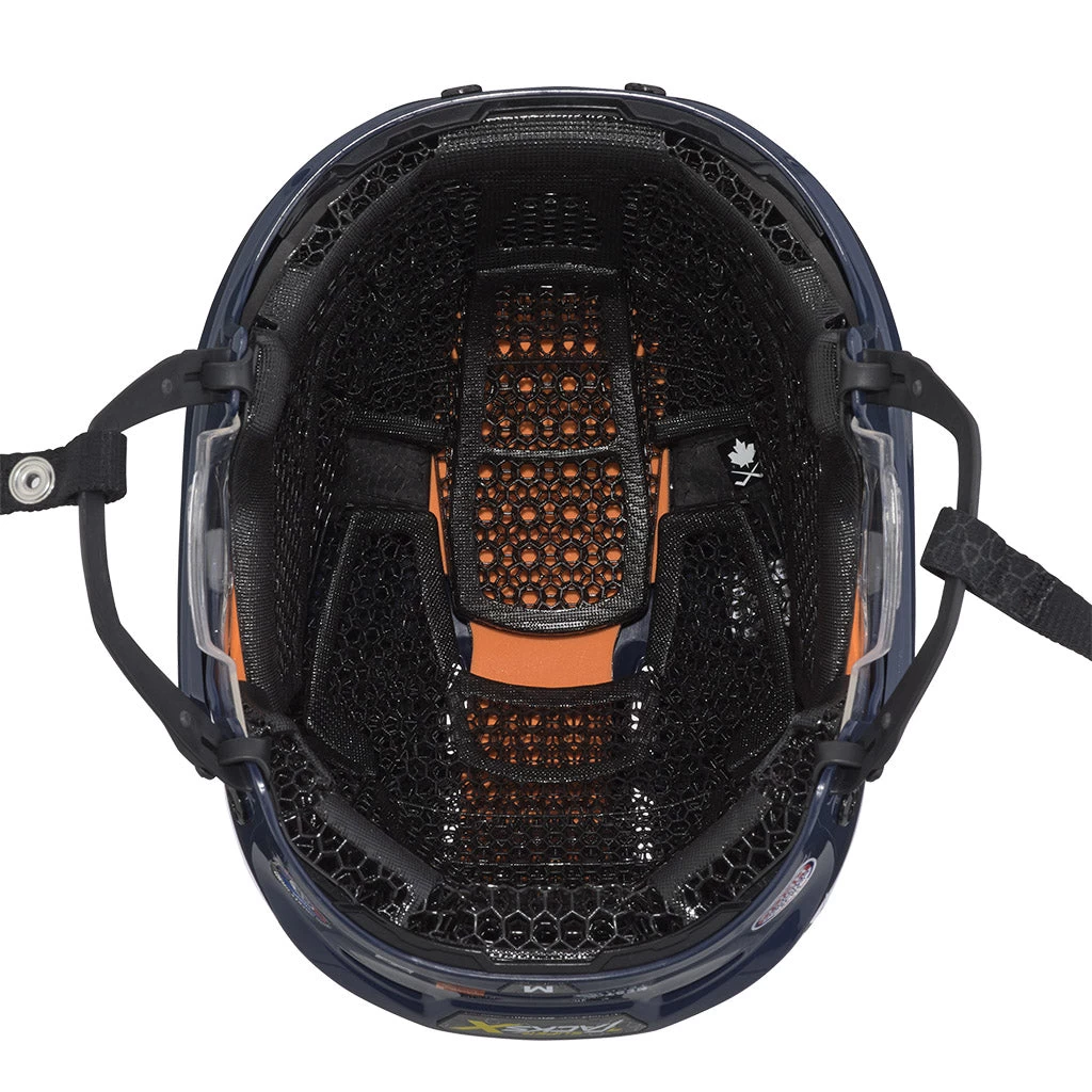 The Super Tacks X Helmet will help you play your best hockey from start to finish. Utilizing game-changing research and development and 3D digital manufacturing, this next generation helmet offers premium protection and comfort. The Super Tacks X Helmet provides pro levels of protection and fit customization, while its signature new feature – a unique Nest Tech 3D printed lattice liner – helps optimize thermoregulation to keep players at peak comfort all game long.