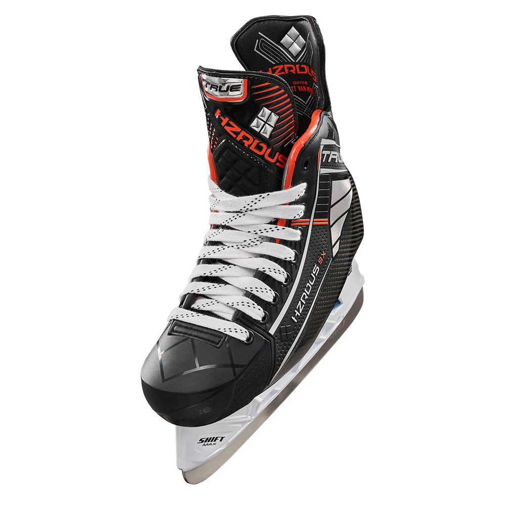 The 9X ice hockey skate is the top model in the 2023 TRUE HZRDUS lineup and delivers best-in-class fit and premium performance for the elite level player. Evolving from the previous generation TF line, the new HZRDUS line features a stiffer shell and delivers a mix of power, response and control. Incorporating high-grade thermoformable materials and patented NEUROFIT+ shell design, the 9X offers unmatched fit and comfort in an ultra lightweight package.