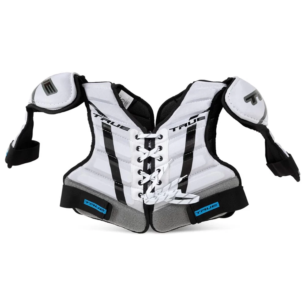 The R-Series Retro shoulder pads from TRUE hockey are a traditional fit, lightweight, comfortable option for any recreational or adult league player, and are available at an affordable price. The shoulders and torso are outfitted with plastic inserts covered front to back in polyethylene foam. The front and back laces on the pads can be used for additional fitting. For convenience you can find modern velcro straps on the sides .
